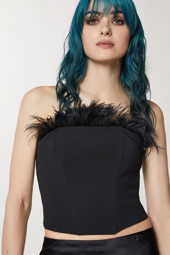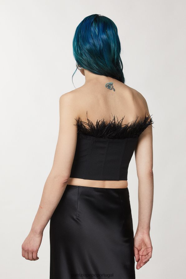 Top Bustiê Confeccionado Em Tecido Crepe. O Corte é Justo E Curto Na Cintura, Com Decote Reto Decorado Com Detalhes No Tom. Combine-o Com Calças Esvoaçantes Para Um Visual Moderno E Elegante.